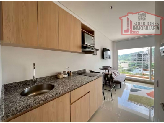 Situado en el noveno piso, cuenta con un diseño moderno y funcional, donde la alcoba con clóset y la sala se integran en un solo ambiente acogedor. Además, dispone de una cocina bien equipada, baño, zona de labores y un balcón con una vista espectacular.